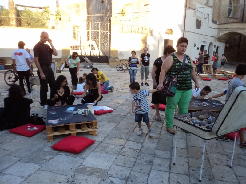 La luna al guinzaglio ha curato le installazioni e i laboratori in piazza Orsini del Balzo: LA PIAZZA D’ ARTE PER LE INFANZIE.